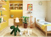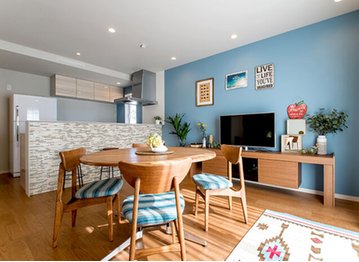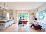 親子のコミュニケーションが生まれやすく、お子さんの感性を育む工夫を満載した桧家住宅の住まい。例えば、ダイニングの一角にスタディコーナーを設けることで、キッチンから宿題をするお子さんを見守れる間取り、将来的に間仕切り可能なフレキシブルな子ども部屋などを提案。さらに、壁にホワイトボードフィルムを貼った「落書きウォール」なども取り入れ、親子一緒に楽しく過ごせる空間を提供している。