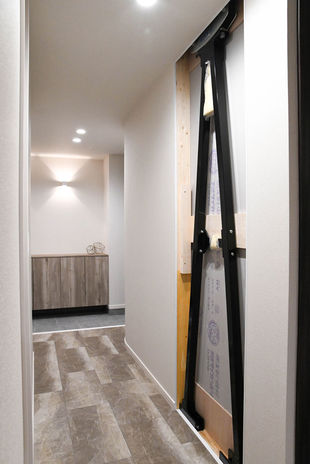 標準仕様〈class S〉では建物性能ラインナップに制震ダンパーも標準採用。住友ゴムの制震ダンパーMIRAIE(ミライエ)を写真右のように、土台(下枠)、柱(縦枠)、梁(上枠)に囲まれた壁の中に設置。大きな地震や繰り返し起こる余震が起きたとしても、基礎と緊結し、ゴムの部分が揺れを吸収。構造材の接合部が変形、破断しないまでに揺れを抑えることが可能。住まいの損傷を軽減し、補修費発生リスクを低減することができる。