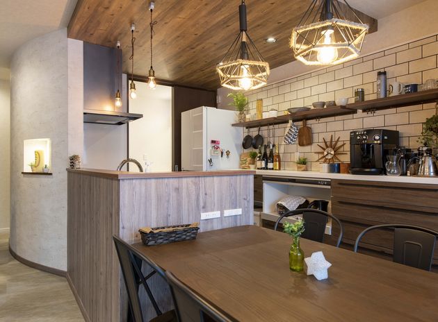 洗練されたモダンデザインと豊かな空間演出が得意なアーキテックプランニング。吹抜けのリビングはワイドな開口から光がたっぷり注ぎ、明るい開放感が魅力。オープンにつながるダイニング・キッチンは壁面に曲線のデザインを効かせ、食の空間を一層楽しく演出。吹抜けを渡るスケルトン階段は家族が行きかうコミュニケーションスポットだ。長く快適に住み続けられる家にこだわりたいなら、一度同社に相談してみよう。