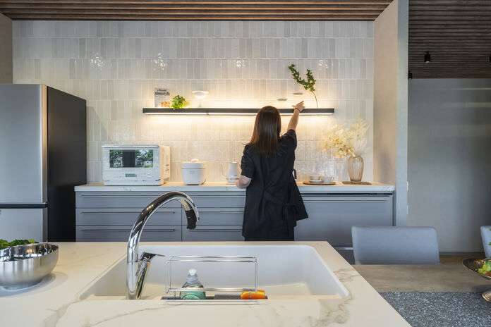 夫婦どちらとも仕事を持っており、現在子育てまっさかり。そんなご家族に同社が提案するのは、家事が楽になることで家族の時間を大切にできる住まいだ。キッチンと洗濯スペースが近く、家事動線がスムーズに設計されており、日々の生活がしやすいとオーナーから支持を得ている。さらに、収納スペースが充実しているので、物が散らかる心配もない。日々の生活がもっと楽になる、そんな住まいを手に入れたい方にはおすすめだ
