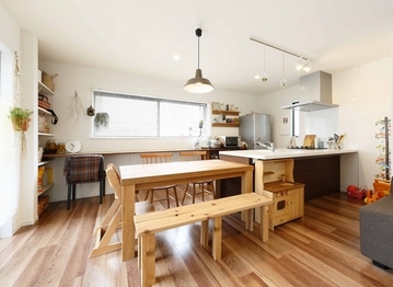 土地探しからの家づくりだったため、依頼先を選ぶ段階では慎重に動かれたIさん。「土地が見つかっても、建物に満足ができない場合がありますし、好みの家が建つ会社ばかりを重視すると、住みたい場所で土地が見つかるとは限らない。どちらも大事だと考えていた私たちは、両方実現できる会社を見つけることが重要課題でしたね。そしてたどり着いたのが、アーバンプランニングさんです。豊富な施工例の中に好みの木のインテリアの施工例を見つけたことで、『この会社だ!』と。あとはとてもスムーズに家づくりができました」。