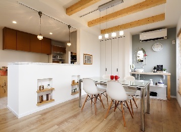忙しい共働き世帯だから、家族で過ごす時間はコミュニケーションを育む貴重な時間。カウンターキッチンを中心に展開するLDKは、キッチンで家事をしながらも、リビングにいる家族とコミュニケーションがとれるのため好まれる方も多い。水回りの動線にも工夫を凝らし、家事の負担も軽減する。具体的なニーズにもできる限り応えてくれるので、希望や悩みを相談しよう。