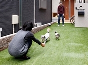 限られた予算の中で愛犬が元気に走り回れる家を北摂で実現する。その夢を叶えた秘密は、取得コストが抑えられる旗竿地。同社はその土地形状を活かし専用アプローチを「ドッグラン」として活用することを提案。また玄関扉の横には愛犬たちが帰りを待つための覗き窓、廊下にはワンちゃん専用のドアを設けるなど、愛犬と暮らすための工夫がいっぱい。北摂の土地探しからプランまでトータルサポートの同社だからこそできた家づくりだ。