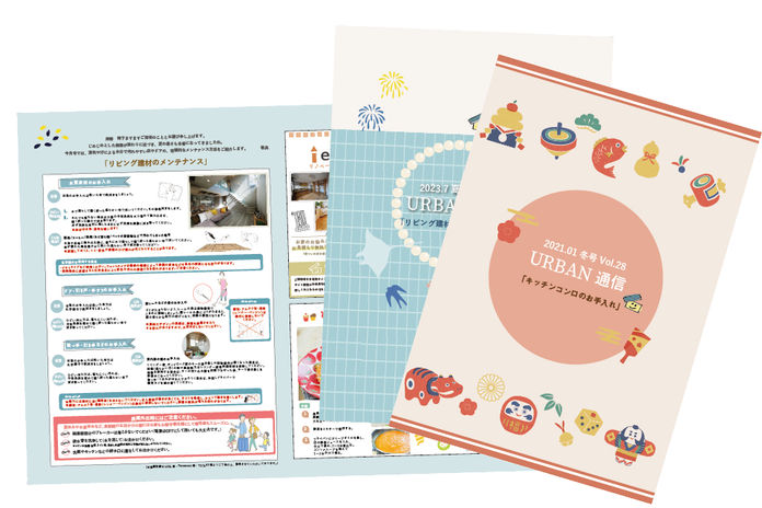 永く住み続けるためには、建てたあとのメンテナンスが必須。アーバンプランニングは、建てる前はもちろん、建ててからも安心のアフターフォローが続く。住まいの設計や構造を熟知し、無駄なく、的確なアフターフォローを実施している同社。年4回発行の「アーバン通信」では、日々のお手入れ方法などを配信。また、定期的にアフタースタッフが訪問するなど、北摂エリアに特化している同社ならではの取り組みも。