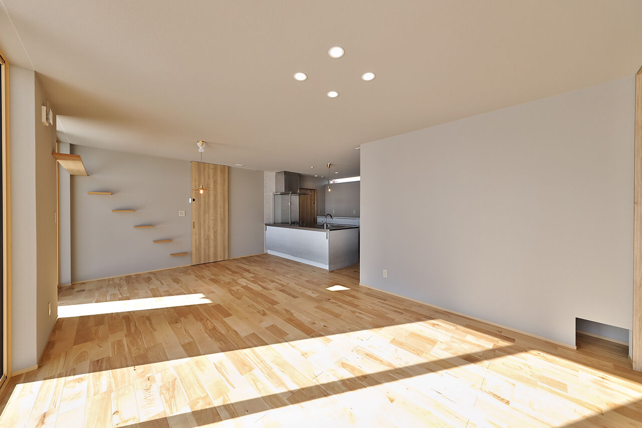 タカノホームさんを選んだ理由は、自然素材にこだわった家づくりをされていたからです。モデルハウスに入った瞬間の木の良い香りがとても印象的でした。担当営業さんにも親身に相談に乗っていただき、平屋、無垢床、太陽光、耐震等級3…自分たちのやりたかったことが全て詰まった家にすることができました