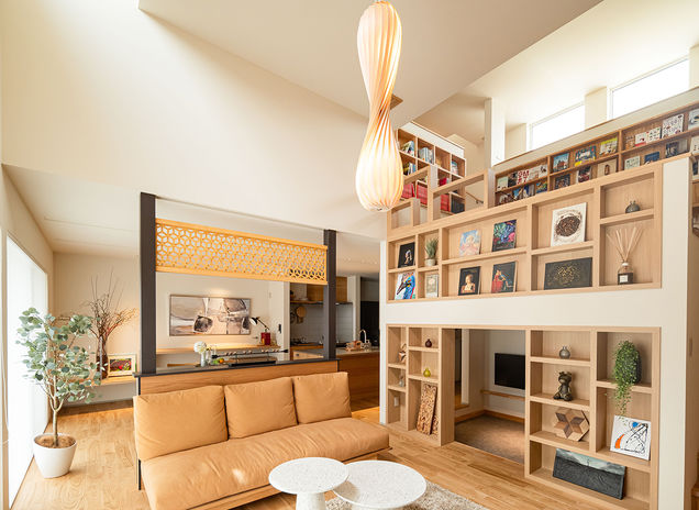 コウヨウは「くらしを謳歌する」をコンセプトに、ライフスタイルだけでなく躯体性能、パッシブ設計、内外観デザイン、景色などすべてを考慮した、直観と効率が調和する住まいをデザインしている。ハイグレード仕様のモデルハウス「テアトル」では、断熱性能G3グレードと松尾式全館空調を組み合わせ、快適性を追求しながらも、無垢材、塗り壁など本物の質感にこだわった空間に。(写真はモデルハウス「テアトル」坪単価100万円)