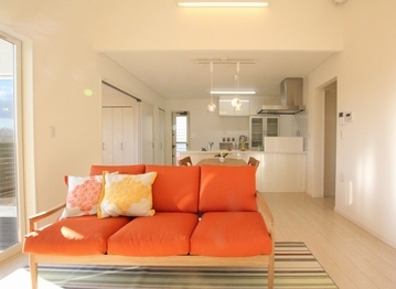 外観は洋風格子の窓やオレンジ色の屋根が印象的な平屋住宅。勾配天井を活かし、広く感じさせる空間づくりが素敵な家。また、平屋タイプはかわいいだけではなく、ほかにも和モダンやカフェ風など、家族の好みによってさまざまなテイストでデザインされる。自分好みの平屋住宅を見つけるなら、同社平屋モデルへぜひ足を運んでほしい。またZEHについても対応しているので、気軽に相談してみて。