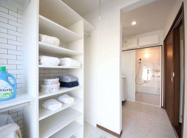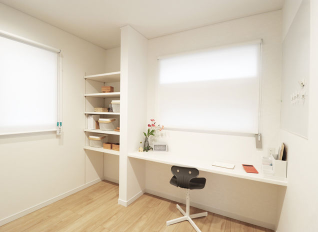 各部屋収納やリビング収納はもちろんのこと、生活動線を考慮した収納の提案で、家族みんなが使いやすく仕舞いやすい。暮らしやすさを第一に考えた収納は家中をすっきりと保つことができる。在宅ワークのスペースも可動棚を取り入れているので、ものの大きさに応じてサイズを変更でき、スペースを有効活用できる。