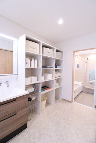 汚れて帰ってきても、外から直接ドライルームへ入り、そのまま脱衣所で服を脱ぎ、お風呂へ直行できるストレートな間取りが大人気。居住空間を汚さないので、余計な家事が生まれず快適。また、ドライルームで洗う・干す・仕舞うも完結できるのも人気なポイント。リビングのお子様の様子がキッチンから見える間取りも、「ながら家事」ができるので安心で効率的。