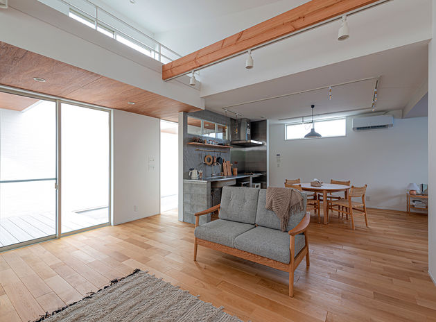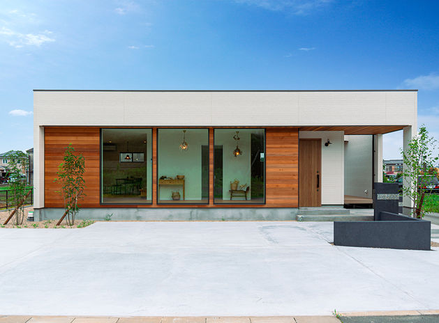 同社が手掛ける平屋は、ライフスタイルに合わせて本当に必要なものだけを絞り込んだ「ミニマルに住まう究極の平屋」がコンセプト。“ゼロLDK”としてワンルームを必要最低限の間仕切りのみで構成したり、リビングとつながる中庭を設けてアウトドアリビングとして活用したりと、暮らしに合わせて多彩な間取りを提案する。趣味部屋がほしい、庭にBBQスペースをつくりたいなどの希望にも対応するので気軽に相談を。※写真は商品施工例