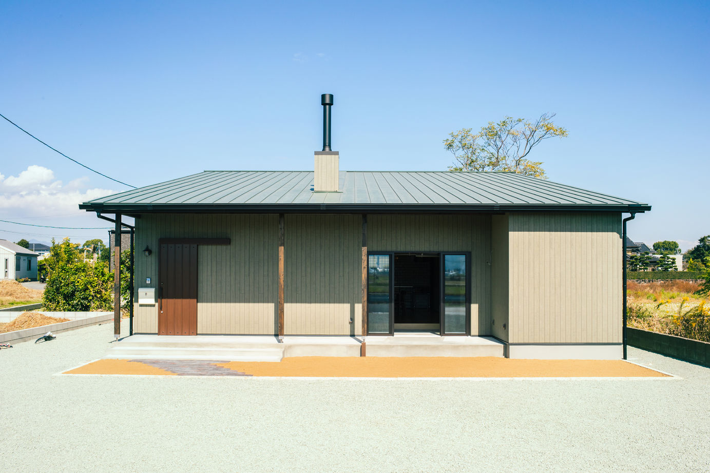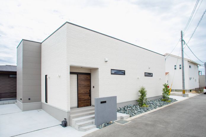 平屋は、日常生活でストレスを感じやすい生活動線をシンプルかつコンパクトにまとめることができ家事もラクになり暮らしやすい。部屋と部屋との距離が近くなることで、家族同士の心の距離も近くなりコミュニケーションが取りやすく子育てしやすいのも魅力。デザインとしては平屋の勾配天井を生かしたダイナミックで抜け感のある家にもできる。