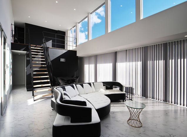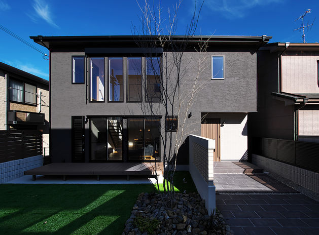 美しく洗練されたデザインと最高水準の性能を備えた、ハイグレード住宅を提案するあおぞらホーム。全棟、構造計算を行い、耐震等級3を確保。強い構造とZEH仕様の高気密・高断熱な家づくりで、ホテルライクな居心地を追求している。設計~施工まで自社一貫体制を整え、ハイレベルな要望に対応。愛車と暮らすビルトインガレージや自然とつながるアウトドアリビングなど、豊かな暮らしを演出するプランを提案。写真:5000万円台。