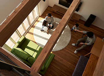 程よい距離感がありながら、互いにコミュニケーションやサポートがしやすく、経済的なメリットをもたらす二世帯住宅。あおぞらホームでは女性設計士が丁寧にヒアリングを行い、暮らし方に合わせて共有するところと分離するところをしっかりと検証。水まわりへの動線やバリアフリーなど、将来的な介護を視野に入れた計画にも精通し、三世代が末永く快適に暮らせる家づくりをめざす。