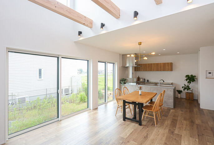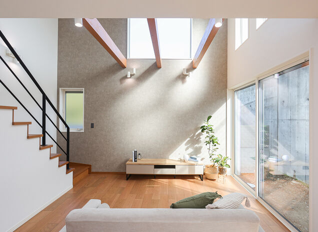 COLORS工務店は、お客様が毎日を心地よく過ごせるよう、通風・採光を最大限に活かした家づくりを提案する。立地や周囲の環境を考慮し、窓の配置や大きさ、吹き抜けなどの空間設計を工夫。自然光が降り注ぎ、心地よい風が通り抜けることで、明るく開放的な空間を実現する。省エネにもつながる快適な住まいで、心豊かな暮らしを始めよう。