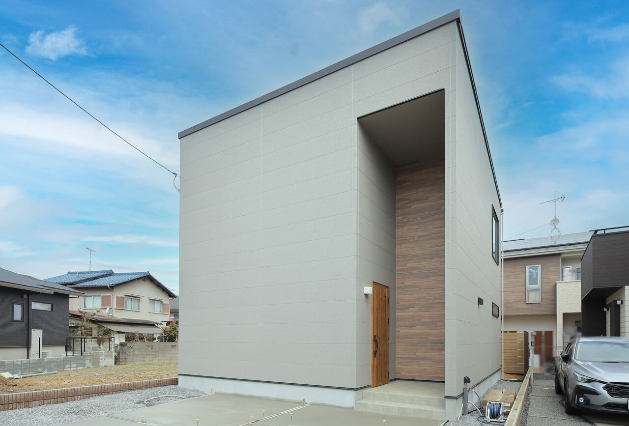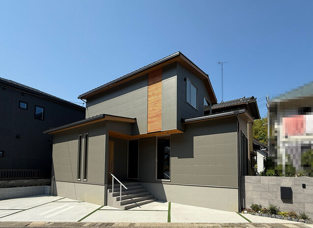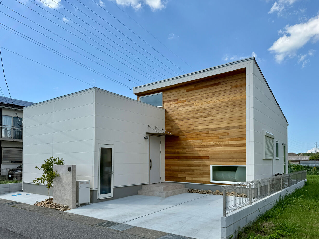 結婚を機に家づくりを検討され、職場の都合などもあり大津市周辺で物件を探されていたFさん夫婦。最初の条件は友人や家族を招くことができるようにと、3~4台の駐車スペースを持てる広い土地があること。SNSを通じ情報収集をしていたところ、個性的な外観デザインと広々とした駐車スペースのある、同社が過去に建てた物件のビジュアルが目に留まり相談会へ訪れた。Fさん夫婦の希望を実現する提案だけでなく、将来を見据えた部分まで親身になって提案してくれる同社の姿勢や信頼感に魅力を感じ、同社での家づくりを決められたそう。