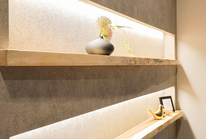 天然木は自然のものだけに「動きやすい」性質があり、ぐらつきがないようにかっちり固定しなくてはなりません。また乾燥や湿度にも配慮が必要です。天然木を多数扱っているからこそ、施工には自信があります。また美しい空間をつくるために、細部にまでこだわり、すっきりした収まりを大切にしています。