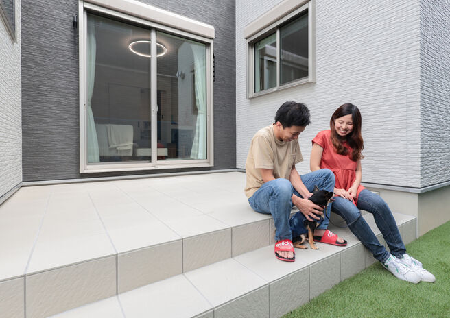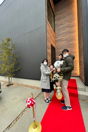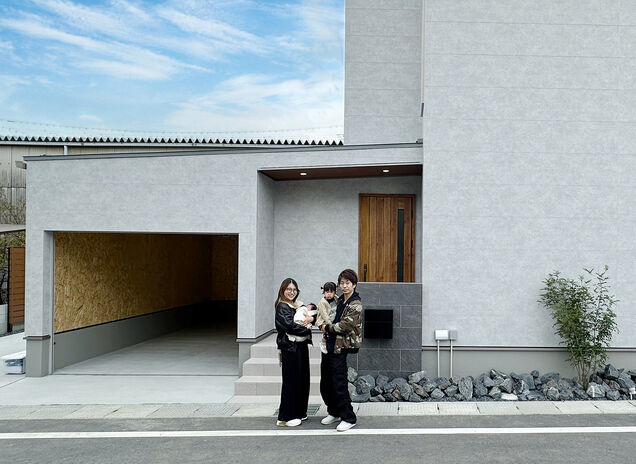 “お洒落で庭が大きく、車も3台は駐められるような家”を草津で探していたというOさん。外観のスタイリッシュなイメージや、自然素材をふんだんに使用した吹き抜けの内装デザインなど、自分たちの理想に近い物件をSNSで発見したのが、同社の物件だったのだとか。実際に見学へ訪れ同社スタッフと話しを進める中で、より新しい住まいへのイメージを持つことができ、同社での家づくりを決めたそうだ。「駐車場が広いため友人を招待しては、楽しいお家時間を過ごしています。家も場所も気に入り、いずれは子どもも育てていきたいですね」。そう楽しみながら毎日を過ごしているのだという。