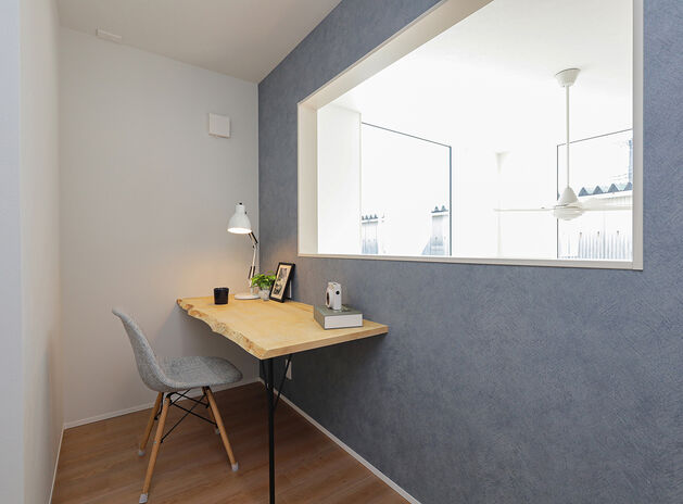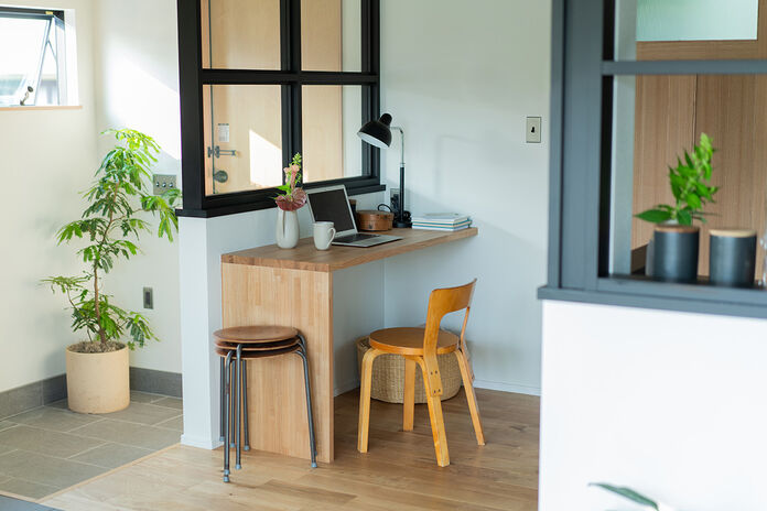 何社もの完成見学会に参加したというYさん。「COLORS工務店 一級建築士事務所の外観がとても好みのタイプだったんです」。ご夫婦で話し合っていた「こんな家がいいね」というイメージに合っていたとのこと。さらに「カウンターテーブルに使われていた天然木がとても素敵で、わが家にも取り入れたいと思いました」。見積もりも明瞭で、担当者の対応も気持ちよかったので、依頼を決められたとのことである。