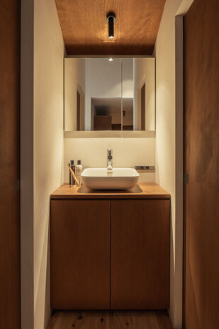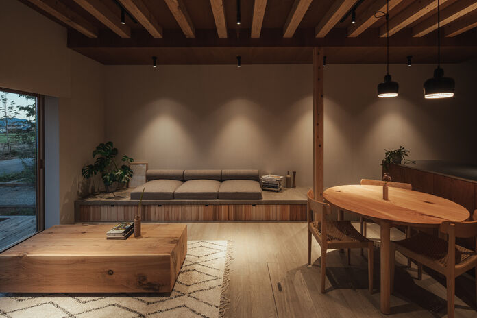 家族が和やかに団らんできて、明日への活力を養えるような住まい。夜の心地よさを見据えて、照明プランやインテリアでくつろぎをつくり出す。外観デザインも間接照明を仕込むなどの工夫で、夜の表情を優しく印象的に。帰宅した家族がほっと心和むだけでなく、周囲の街並みに美しさを提供し、防犯にも貢献する。