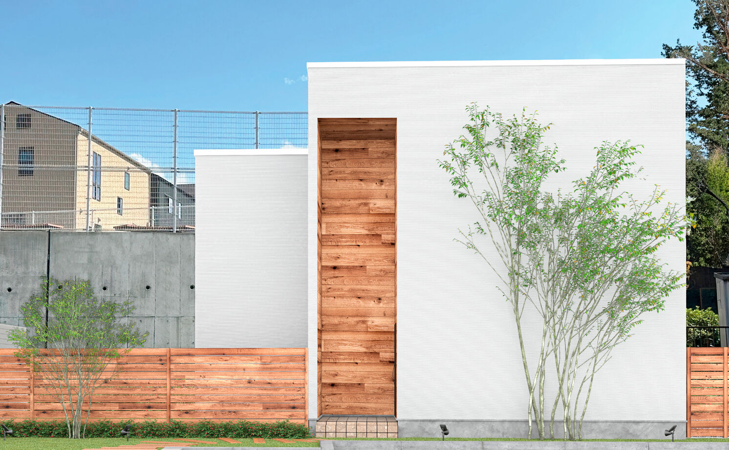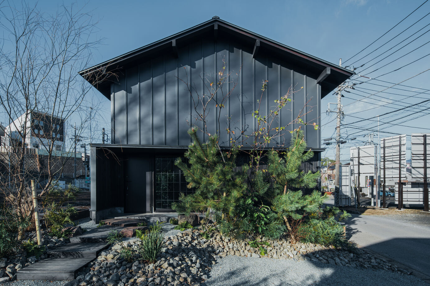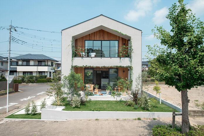 「家と庭を合わせて『家庭』になる」という考えのもと、建物だけでなく庭や外構もトータルにプランする。プライバシーを守りながら自然を感じられる中庭や、室内とひと続きのデッキなど、暮らしを豊かにするプランを提案。外構も建物と合わせてプランし、小さなスペースでも植栽を配して緑で潤いを与えたり、夜はライトアップして影で演出するなど、印象的な外観にする。
