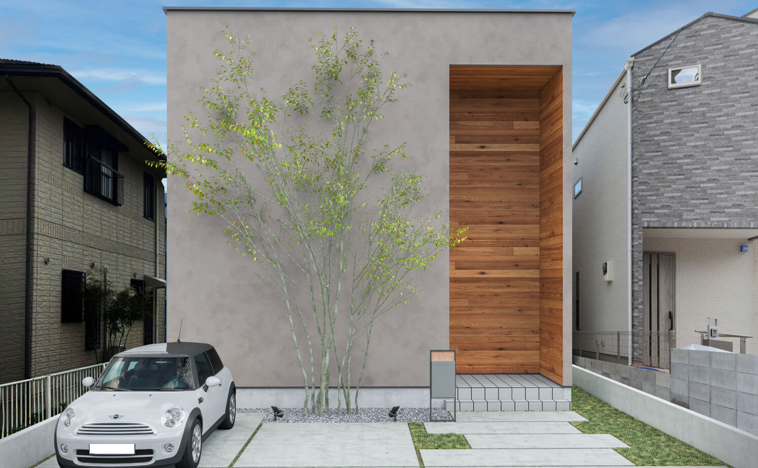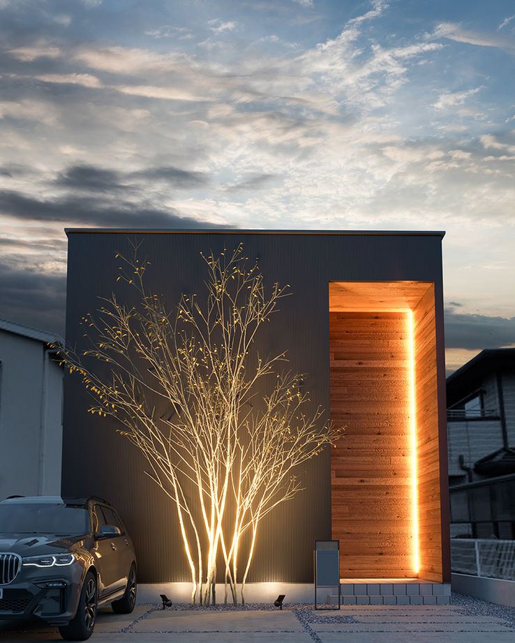家の中の暮らしやすさとともに、外観デザインも愛着のある家のために大切な要素です。間取りプランが外観にも影響しますので、間取りを考えるときは同時に外観のデザインも考えています。夜、帰宅時にわが家を見てほっとする気持ちも大切ですので、間接照明などで夜のデザインにもこだわり、印象的な演出をしています。