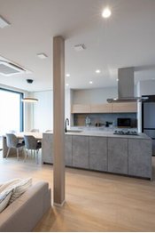 多くの施工実績を持ち、高い技術力を持つ同社では店舗併用住宅の家づくりにも丁寧に対応。強度を保ちながら、必要な広さや設備を備えて希望に沿った店舗空間を提案している。もちろんデザイン面においても、細部の部材選びにこだわってイメージ通りの空間を叶えられるようにサポート。居住空間のプライベートを守れるように配慮するなど、どちらも気持ちよく過ごせる空間となるようにプランニングしている。