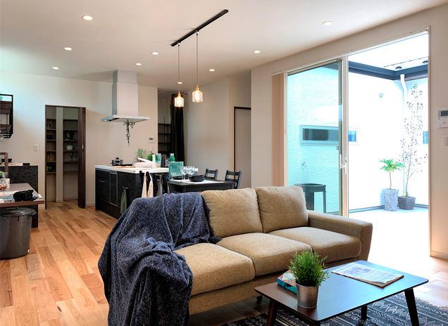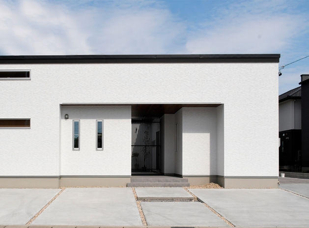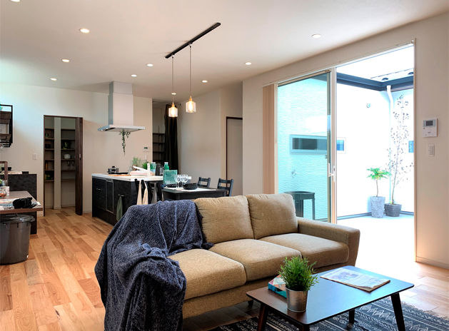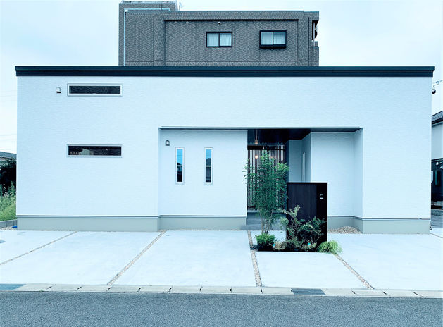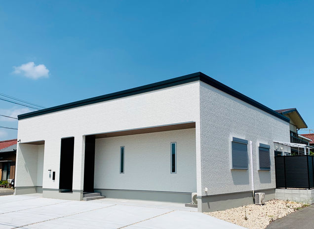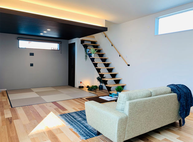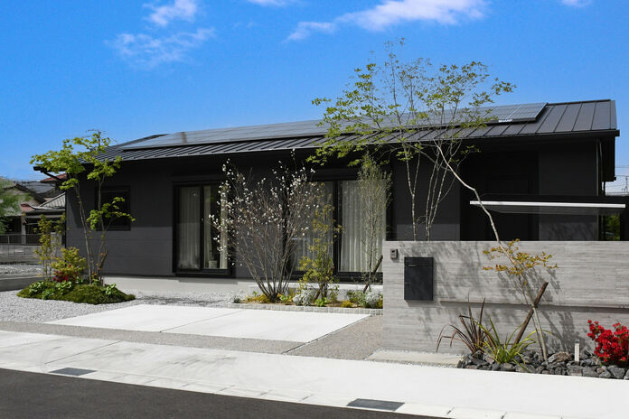 同社の年間施工棟数のうち半数以上を手がけるCasa。近隣の建物の位置・大きさにより光が入りづらく、室内温度のムラが出やすい事も。断熱等級6の住宅性能に、エアコンや第一種換気システムなど組み合わせ年中快適な空間を提供。さらに、日差しを夏場は常緑樹で遮り、冬は落葉樹で取り込む細かなコーディネートまで手掛けており、住み心地にお施主様も納得している(写真の平屋は本体価格3,000万円台)