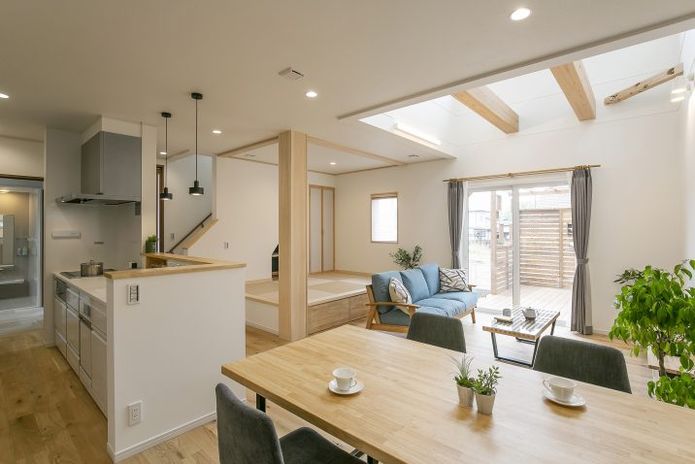 同社が提案するのは、将来のライフスタイルも見据えた快適に暮らせる平屋。キッチン・洗面・浴室などの水回りをまとめた家事ラク動線や、使いやすさと収納量を考慮した造作の収納など、その家族にあった住まいを提案している。経験豊富なスタッフがキッチンの高さやコンセントの配置などの使いやすさを細かくヒアリングしてくれるので快適さは抜群!また、同社こだわりの人にやさしい無垢材・自然素材も魅力的だ。