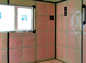 気密・断熱・換気のバランスを重視し、自然素材を使うことでさらに快適性を高める同社の家づくり。角材が太いほど壁の断熱材の量が増えて断熱性が高まることから、太めの4寸角の木材を使用。密度の高い高性能グラスウールの断熱材や、オール樹脂サッシと複層ガラスや三層ガラス、効果的な24時間換気システムを標準的に採用したうえ、外壁材と壁の間に通気層を作って壁体内結露を少なくすることで、建物の耐久性も向上させている。