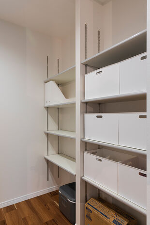 必要な場所に、必要なスペース。子供が小さいうちはどこにいても目が届くように、そして、まとめ買いや宅配サービスで日用品のストックにも対応できるパントリーや玄関収納。予想されるライフスタイルの変化にも対応できるよう、どんな暮らしをイメージするのかをじっくり聞いてアドバイスをくれる。提案力の豊富さにも注目だ