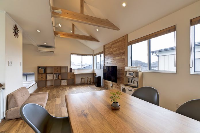 アオバクラフトは、太陽のエネルギーを上手に取り入れられるよう、窓の位置や大きさなどを設計し、太陽の光、自然の恵みがもらたす心地よい住まいを提供。狭小地や変形地でも敷地条件を活かしながら、自然の恵みを存分に生かした設計を行う。例えば、狭小で庭が取れないが、日常でも好きなアウトドアを感じられるようにと、広々としたルーフバルコニーを併設するなど、施主の要望を捉え技術で叶える。
