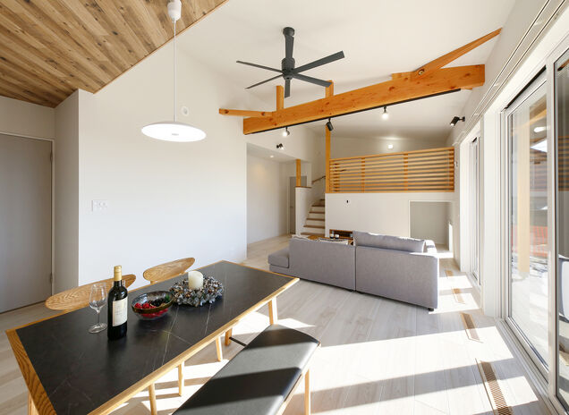 「弦」が手がける住まいは、充填断熱によるHEAT20 G1グレードと、さらに外張り断熱を組み合わせた付加断熱工法によるHEAT20 G2グレードの2つが選択可能。プロの提案力により部材ロスを抑え、工程をシンプルにするなど徹底したコスト管理を行い、コストパフォーマンスの高い住まいをご提供。夏は涼しく冬は暖かい、1年を通して安定した温熱環境を叶える高気密・高断熱の家。家族の健康を考えた満足度の高い家づくりを実現している。