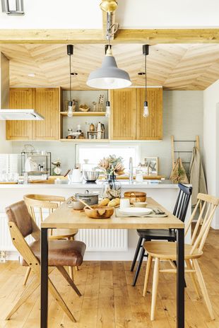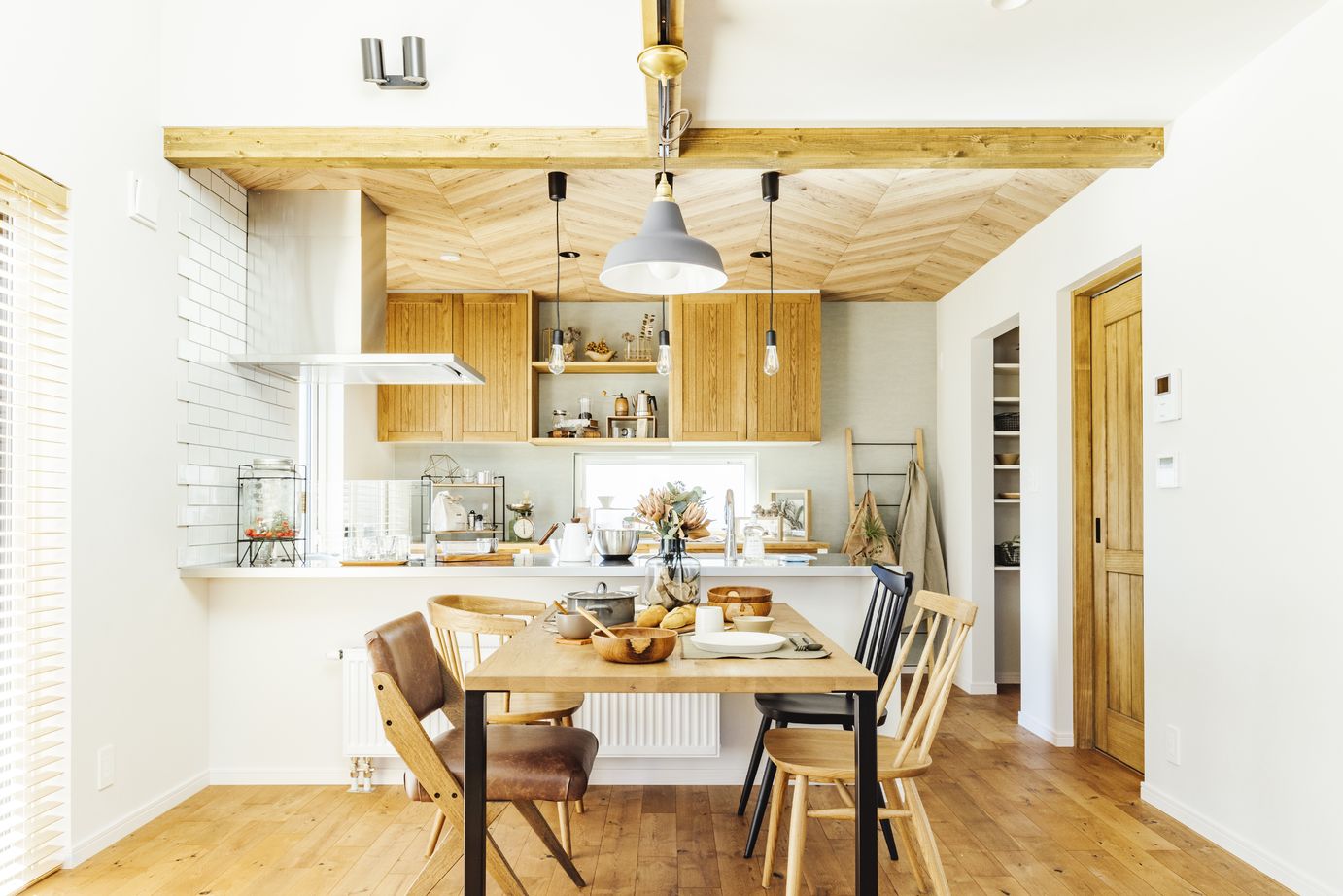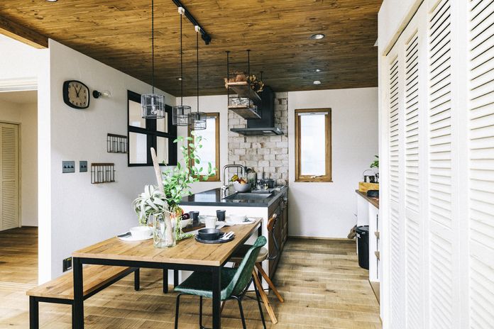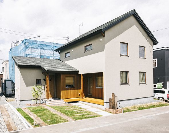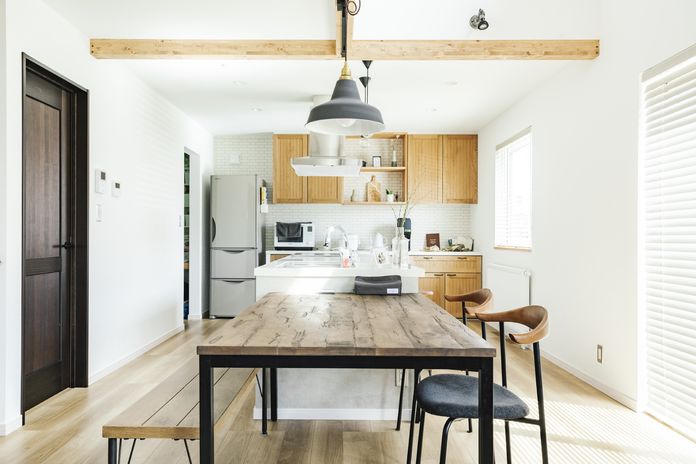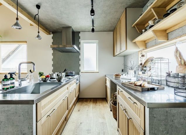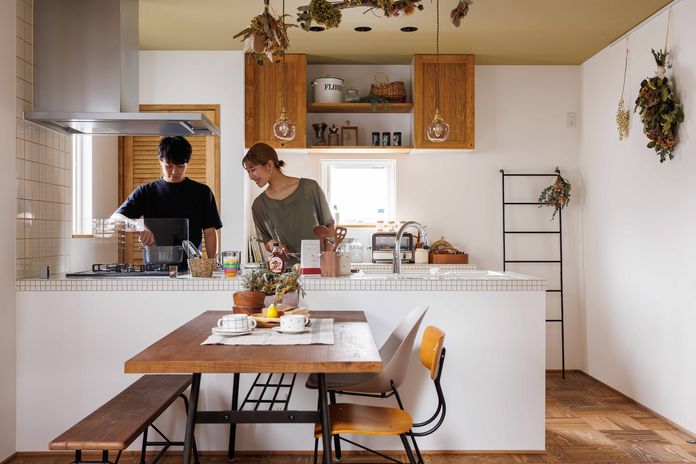 家づくりで大切に考えているのは、そこで暮らしていく「家族」のこと。北海道生まれの高い断熱性能により、一年を通じて家族が快適に過ごすことができる。無垢材やタイル、レトロな照明などが、やわらかでやさしい風合いを生み出し、あたたかく住みやすい空間をつくる。住む人によって好みや使い方が異なるキッチンは、ライフスタイルに合わせて導線や収納などをオリジナルで仕上げ、共働き世帯の家事も快適にする。