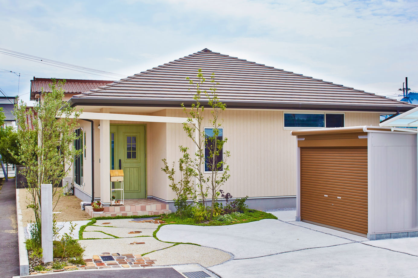 ひのき住宅の家づくりは「とことん聞く姿勢」を大切にしている。打ち合わせには設計士が同席し、施主が思い描く住まいの輪郭や紡ぎ出す言葉などをヒントに、会話の中で想いをしっかりくみ取って提案。自由設計でデザインの幅が広いことに加え、レンガや石、塗り壁などあらゆるテクスチャーを使い分ける。シンプルモダンな外観デザインはもちろん、プロヴァンス風、重厚感のあるクラシカルな家など、理想の形を実現してくれる。