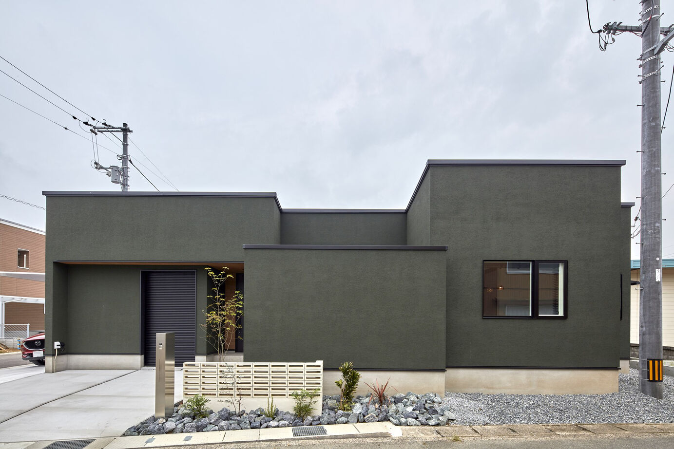 ひのき住宅ならではの洗練されたデザインの平屋。細部に渡るまで施された施主様のこだわりの数々。こだわりを実現可能なひのき住宅の技術。家族が集まり易いようLDKを中心に配置し、明るい家庭を目指すため採光・配色にもこだわった。家事スペースを一箇所に集め、家事の時短が計られる間取り。このこだわりとご提案を皆様にも届けたい。