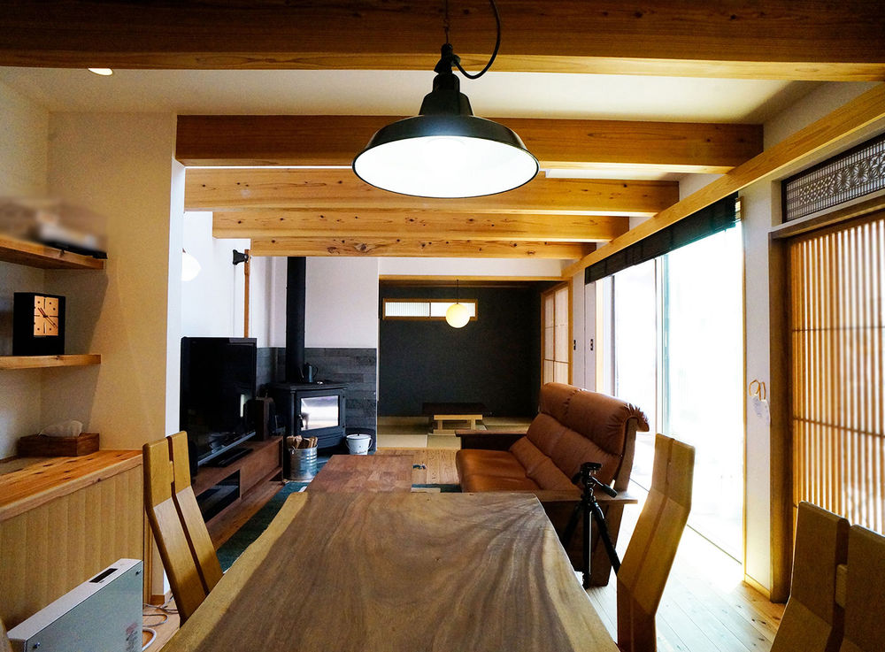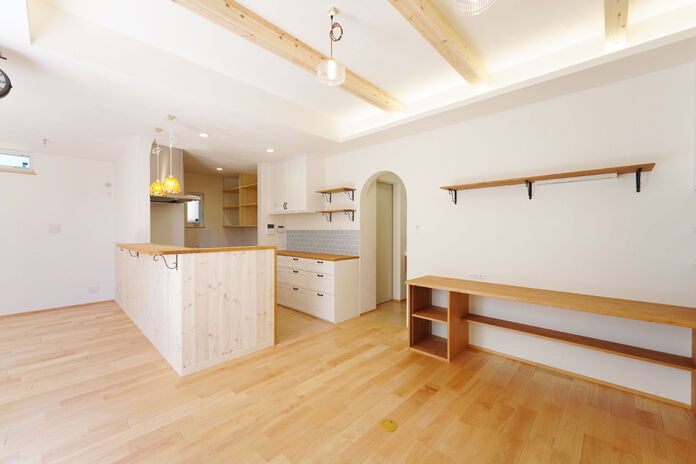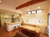 社内デザイナーが一貫担当となり、施主のデザインの理想を最大限形にするハナハウス。そんな同社の家づくりはフラット35Sの基準をクリアした耐震性・耐久性に優れた省エネ住宅だ。冷暖房効率を上げる住宅性能はもちろんのこと、使う素材も厳選。素足でも気持ちいい十津川村の無垢材の床や、自然素材純度の高い漆喰の壁で、心地よい空気の家を提供する。広々リビングや吹抜けでも冬はほんわり温か、夏はさらりと快適な暮らしだ。