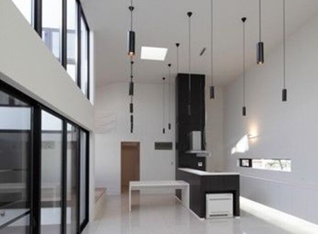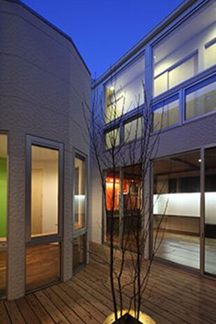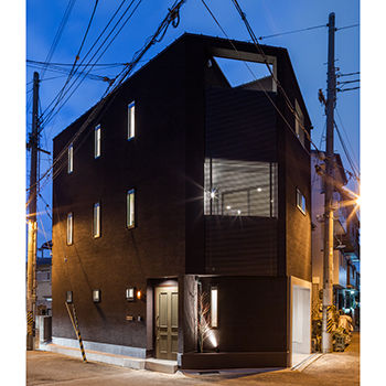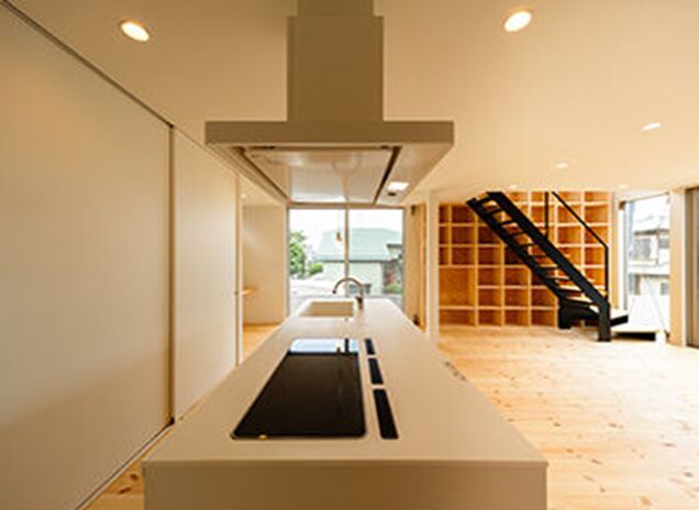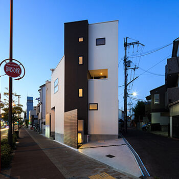 上の写真は12坪の小さな敷地や、3方向を道路に囲まれた三角形の土地に建てた家。建築家ならではの柔軟な発想で、悪条件を乗り越え、敷地がもつポテンシャルを引き出したプランで完成している。難易度が高い土地だからこそ、建築家の設計が活きるというもの。土地探しにも対応。整形地ではできない面白い間取りプランも提案しながらサポートしている。