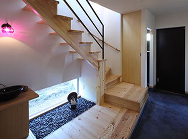 ペットドアなどの設備の面ではもちろん、ペットがどういう行動をとるのか動線まで組み込んだ家づくりを同社は行っている。人とペットの動線が重ならないよう、デッドスペースをうまく利用しコミュニケーションを取りやすくしたり、ケージ置場の床を下げて散らかりにくくなどお互いが心地良く居られる空間を設計。遊び場やペットが好きになってくれそうな場所作りなど、ペット目線での様々なプランもうれしい。