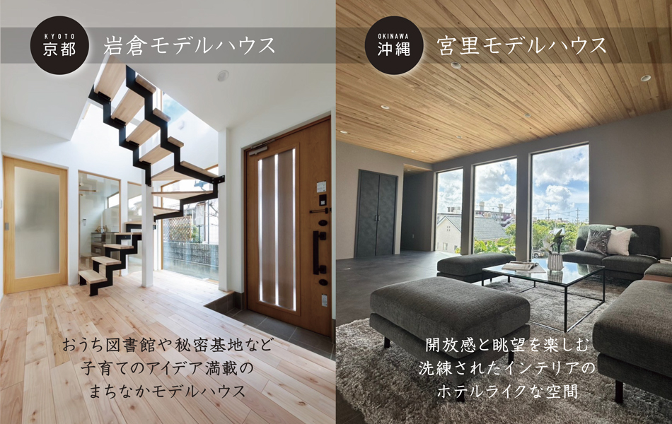 暮らしやすいプランや素敵なデザイン、素材や性能をじっくり体感。京都と沖縄、2つのモデルハウスへぜひ!