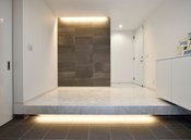 長期優良住宅仕様の100年住宅は標準でZEH基準相当の断熱性能(UA値0.6)をクリア。さらに、冷暖房・換気・給湯・照明設備の性能や太陽光発電設備等の創エネルギーを総合的に評価する基準を満たし、一次エネルギー消費量において最高等級の6を取得している。高気密・高断熱の住まいだから冷暖房効率も高く、さらに玄関ポーチや廊下、洗面所などすべてLED照明を標準採用。人にも環境にも優しい家を提供している。