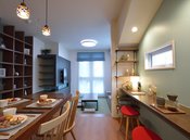 京都の街中の狭小地や3階建てなどを多く手がける同社は、吹抜けなどの立体的な大空間づくり、プライバシーを尊重しながら光と風を存分に取り込む設計を得意としている。施主の話を真摯に聞き、その思いをしっかりとデザインに盛り込む。空間を広く見せるためにスケルトン階段やアイアンの手すり、さらには造作家具を設けるなど工夫も細部にまでわたる。国産材を使った住宅性能の高い住まいが1000万円台より。