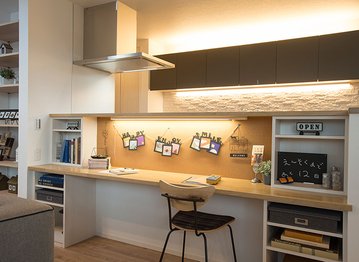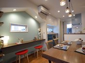 「家づくりは家族の幸せづくり」と考える同社は、家族が触れ合い安心して子育てができるプランニングにも力を入れている。LDKの一角に造作カウンターや収納のあるスタディーコーナーやキッズスペースを設け、家事をしながら子どもを見守れる空間をデザイン。リビングに配した吹抜けや階段は開放感とともに家族の気配を感じられる配慮だ。広い洋室は将来2部屋にすることを想定しているなど、子どもの成長を楽しめる家を提案している