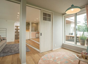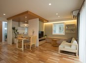 平面に広がるスペースで快適に暮らせる平屋建ても得意としている。木の印象で温みを与える梁見せ天井や柱が少ない大空間のリビングをデザイン。LDKから見渡せる中庭を設計し、オープンウィンドウや広いウッドデッキ設置など都心の暮らしを楽しむ工夫が随所に取り入れられている。また、将来の介護を考えたフルフラットの平屋にも対応。車椅子で動きやすいようにすべてにゆとりを設けている。平屋建てについても気軽にお問合せを。