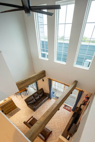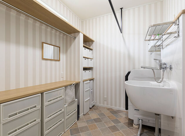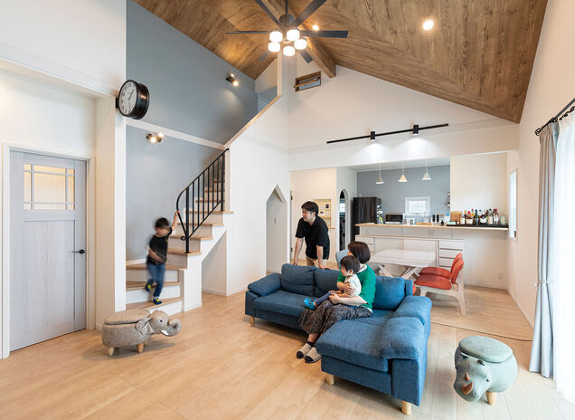Nさんご夫婦が、ロビンスジャパンを選んだ理由の一つは、コスト。「数社を検討しましたが、希望のサイズの家を建てようとすると1億を超えてしまうのでは?と。小さく建てるしかないのか、と諦めかけていた時にロビンスジャパンと出会って、状況が一変しました」とご夫婦は振り返る。声を掛けていた他社を全部断って訪ねたショールームで出会った担当者の対応も、決め手になったという。「担当の上村さんが、最初に『夢をぜんぶ話してくださいね』と言ってくれたんです」と夫人。「それまでは、営業の人は一方的に自社のアピールと値段の話ばかりする印象でした。だから、それまで思っていたことのすべてを話すことができてスッキリ!その上、『要望通りに建てられますよ。一緒につくりましょう』と明言してくれました」。それまで大手ハウスメーカーを中心に検討していたご夫婦は、モデルハウスを持たない規模の会社に、まったく不安がなかったわけではないという。「でもスタッフが皆さん誠実な人たちで、信頼できました。それがいちばん大事なことですよね」と笑顔。建てた今は、知人に自信を持って紹介できる会社だと感じているそうだ。