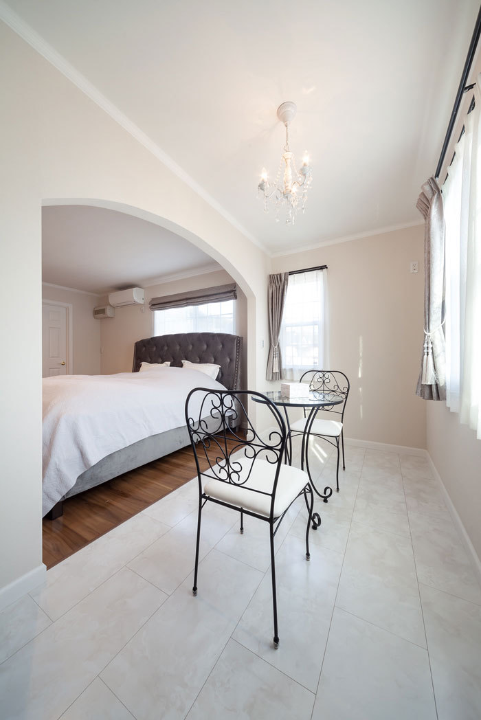 間取りのイメージは、すでにかなり具体的に持っていたFさん。家を建てるのも3回目で、会社選びに特段の興味を持っていたわけではかったそうだ。「だから、いちばん早くカタログが届いた会社で建てよう、となんとなく思っていたんです」。そんなわけで、ロビンスジャパンを選んだのは、実は偶然といえば偶然。「でもレスポンスの速さは、その会社の仕事全体の現れでもあると思うんです」と、同社の最初の対応が、信頼と安心の元になったそうだ。「せっかくなら、今までとは違う家にしよう」という気持ちが、個性的な輸入デザインを提案するロビンスジャパンの家づくりと合致したことも、決定ポイントだったという。
