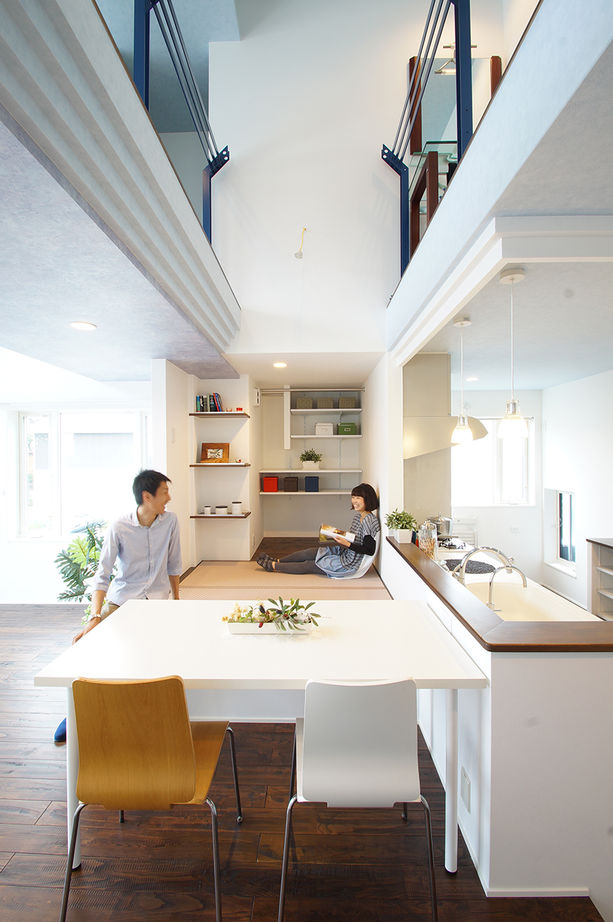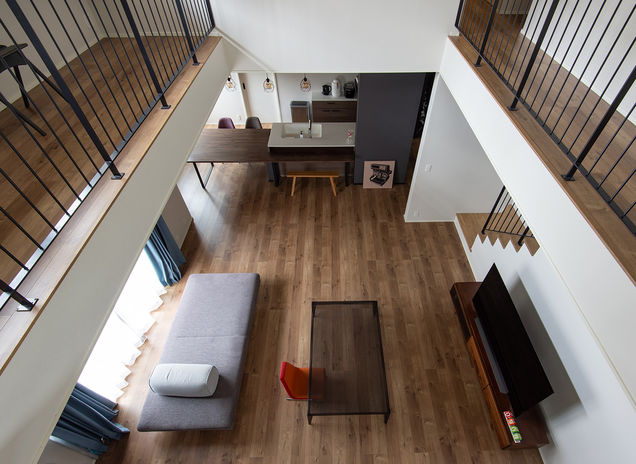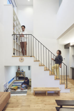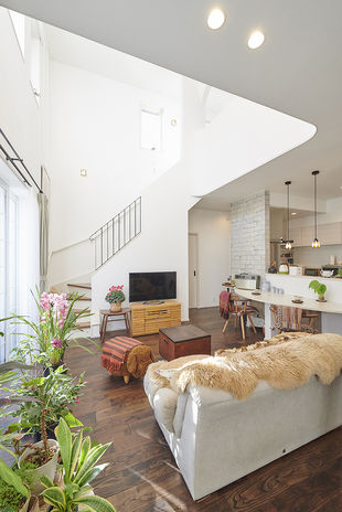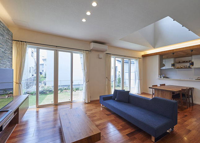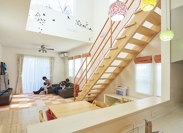 ハスカーサの施工エリアは埼玉・千葉・東京。限られた敷地、難しい条件下でもスペースをフル活用するノウハウが培われている。例えば2×4・2×6工法の強い構造躯体だから出来る「高い吹き抜け」、「スキップフロア」で空間をつくり、天窓・ハイサイドウィンドウでプライバシーを保ちながら光と風を存分に取り入れる。敷地と希望に合ったプラン提案をしてくれる。
