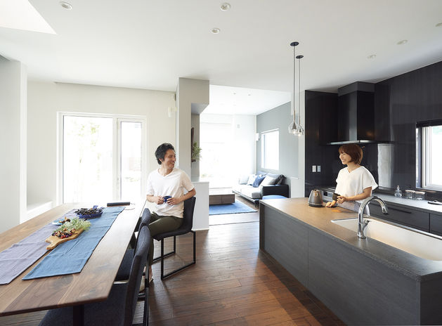 同社の家づくりは、最初から一級建築士と一緒にすすめられるのが大きな魅力。家族構成やライフスタイル、趣味・嗜好などあらゆる視点からじっくりとヒアリングし、プロならではのアイデアで、空間全体を活用してラクにスッキリ片付く収納や動線を提案してくれる。また、機能性だけではなく、こだわりのデザインに馴染むことも重視。オリジナル収納など造作も得意なので、暮らしやすさと美しさを両立できるのも嬉しいポイントだ。