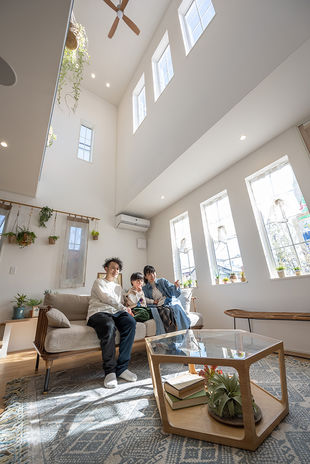 限られた土地の有効活用や、ゆとりある二世帯住宅など、住まいの可能性を広げてくれる3階建て住宅。同社は間取りの自由度が高く、耐震性に優れたオリジナル2×6工法を採用しているので、ライフスタイルにぴったり合った安心の3階建てを実現。さらに2×4工法よりも1.5倍以上の厚い断熱材と樹脂サッシで、ダイナミックな吹抜けを作っても快適に過ごせる。ビルトインガレージや店舗併用など、理想の住まいを叶えるならぜひ相談を。