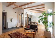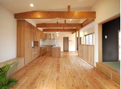 「夏はひんやり涼しく冬はぽかぽか暖かい1年中快適な住空間を実現するには、自然の力を100%活用した省エネルギー住宅であることが大切」と考える同社。実際に、壁の断熱材には原料が木質繊維であるセルロースファイバーを使用。社名が表す通り、身体に優しい無垢材を使い快適さをとことん追求している。「どこか非日常を感じさせる木のぬくもりと、充実した時間を過ごせる開放的なリゾートホテルのような空間」と満足の声も多い。
