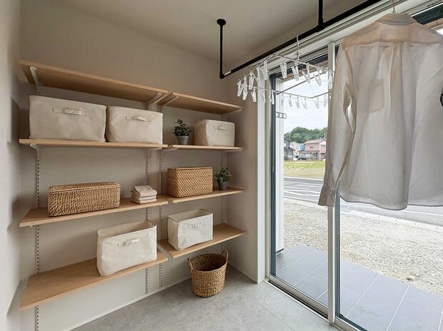 共働きで毎日忙しいご夫婦の家事の負担を減らし、ご家族で一緒に過ごすかけがえのない時間が増えてほしい。そんな想いを込めて、時短家事動線を考え抜いた間取りが誕生。そして毎日の洗濯が楽に出来るランドリールームや、限られたスペースを有効活用し土間収納やパントリー、ファミリークロゼットといった収納力も兼ね備えている。